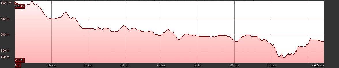 Como também é habitual, no dia antes da caminhada, iremos realizar a Travessia em BTT das Amendoeiras em Flor. Esta travessia em BTT terá inicio na Guarda e terminará em Vila Nova de Foz Côa após 85 Kms, aproximadamente. Haverá dormida em solo duro para a noite de sábado para domingo. O percurso de BTT terá aproximadamente o seguinte gráfico de altimetria.