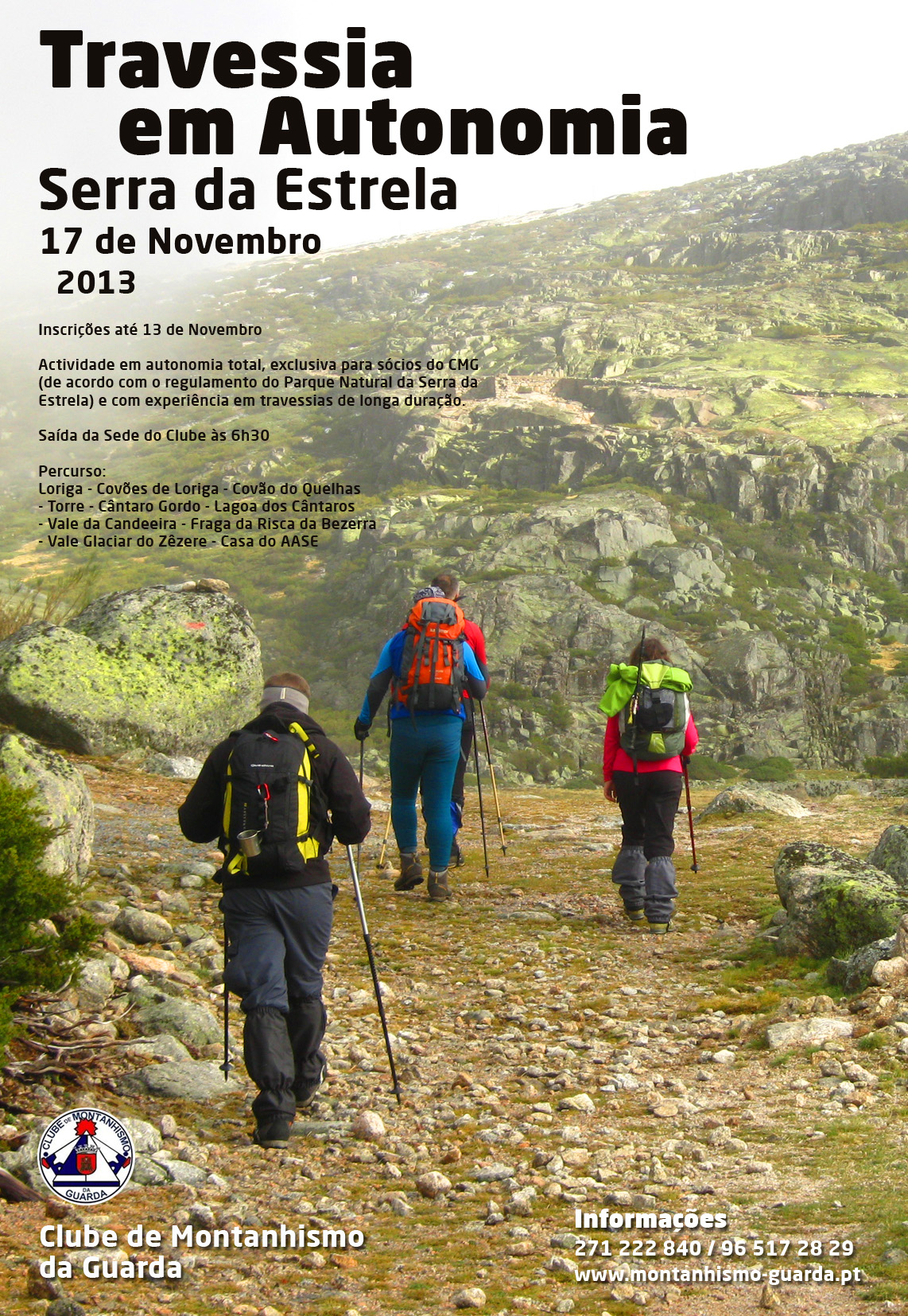 Esta actividade que se realiza em autonomia total, é somente destinada a sócios do Clube de Montanhismo da Guarda.
