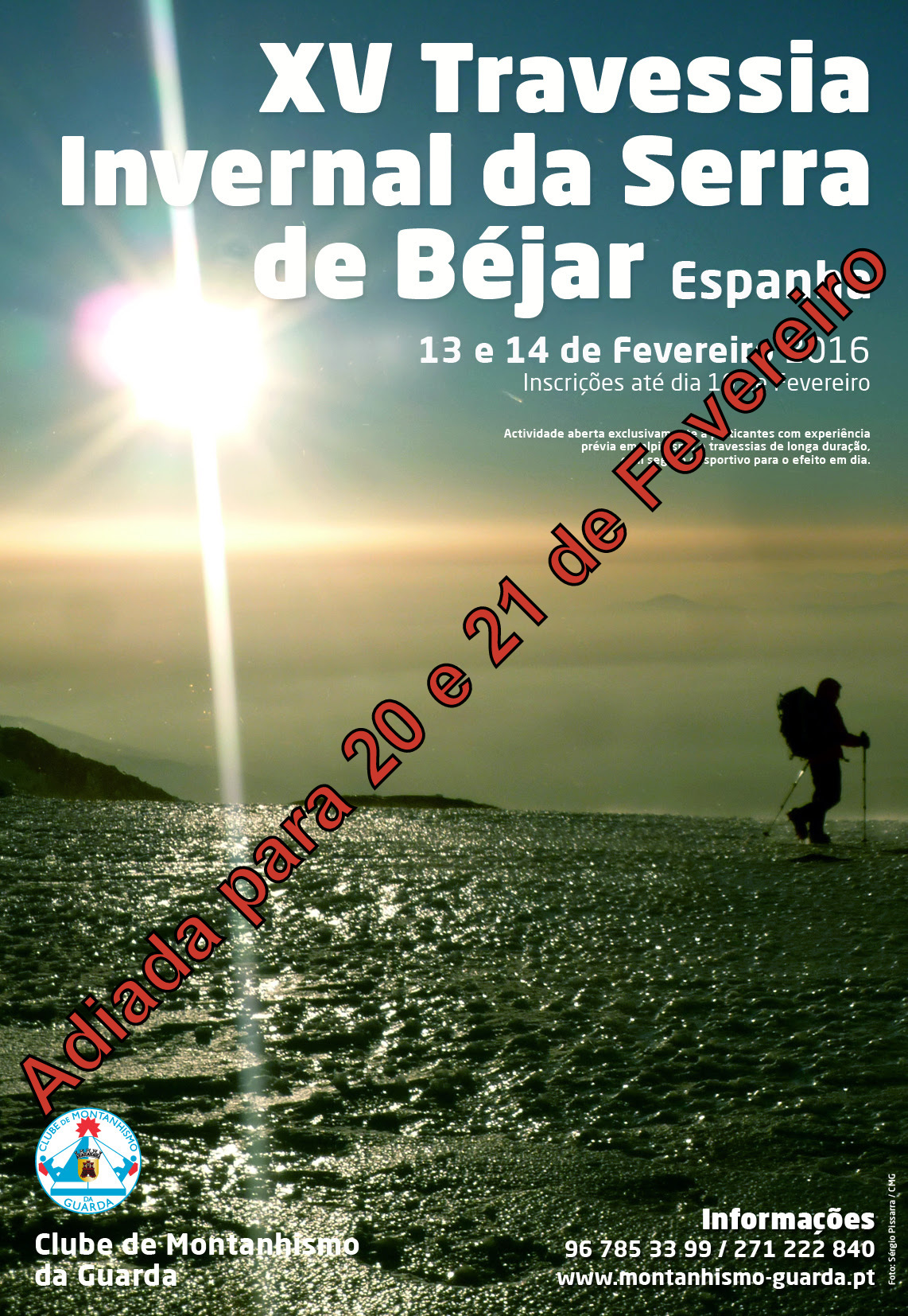 Devido às condições meteorológicas previstas para os dias 13 e 14, a XV Travessia Invernal da Serra de Bejar foi adiada para o fim de semana seguinte de 20 e 21 de Fevereiro. As inscrições podem ser feitas através dos mesmos meios até ao próximo dia 16 de Fevereiro.